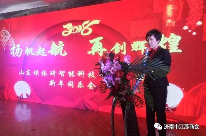 3月10日下午,济南市江苏商会李花副会长企业--山东埃依琦智能科技有限公司群英汇集、欢聚一堂,在一片欢歌笑语中成功举办“扬帆远航,再创辉煌--2018新年同乐会”。
